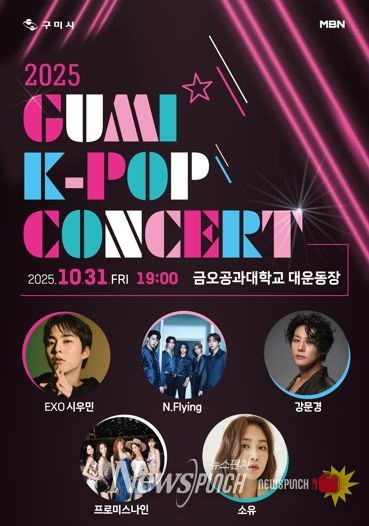 뉴스펀치 김길룡 기자 | 구미시는 오는 10월 31일 오후 7시, 국립금오공과대학교 대운동장에서 '2025 구미 K-POP 콘서트'를 개최한다. 이번 공연은 전 세대가 함께 즐길 수 있는 야외 콘서트로 마련됐다. 아이돌·발라드·밴드·트로트까지 아우르는 폭넓은 장르의 최정상급 아티스트들이 출연해 가을밤 구미를 화려하게 수놓는다.
