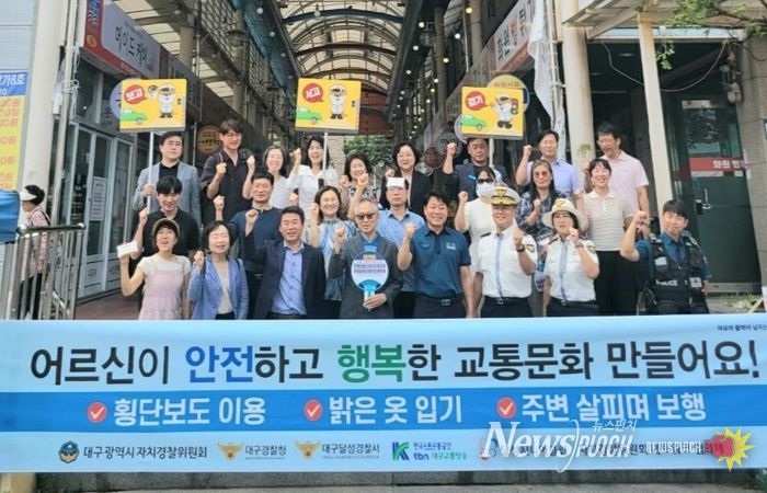 뉴스펀치 조평훈 기자 | 대구자치경찰위원회는 달성경찰서, 도로교통공단 대구경북지부, TBN대구교통방송, 달성시니어클럽 등 유관기관과 협업해 달성군 내 고령 보행자 교통사고가 대구시 내에서 가장 큰 폭으로 감소하는 성과를 거뒀다고 밝혔다.