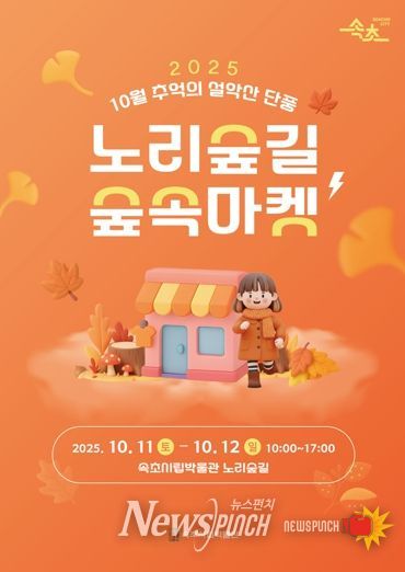 뉴스펀치 김길룡 기자 | 속초시립박물관이 2025년 10월 11일부터 12일까지 오전 10시부터 오후 5시까지 박물관과 노리숲길 일원에서 ‘2025년 10월 노리숲길 숲속마켓’을 연다. 입장료는 무료다.