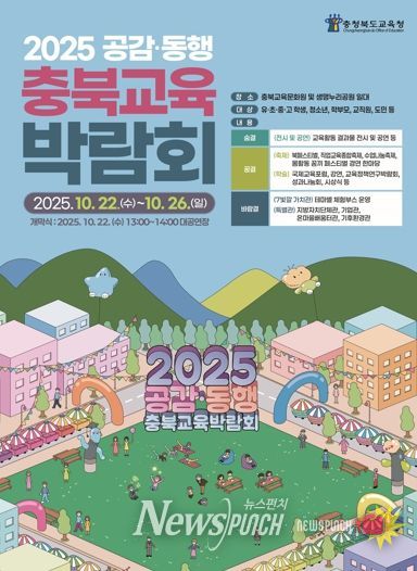 뉴스펀치 김길룡 기자 | 충청북도교육청은 오는 10월 22일부터 26일까지 5일간 청주시 주중동 소재 교육문화원과 생명누리공원 일대에서 2025 공감‧동행 충북교육박람회를 개최한다고 밝혔다.