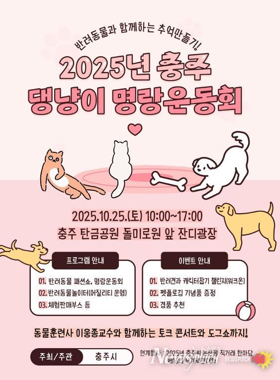 뉴스펀치 김길룡 기자 | 충주시가 오는 10월 25일 토요일 탄금공원 일원에서 반려동물과 반려인이 함께 즐길 수 있는 특별한 축제 ‘2025년 충주 댕냥이 명랑운동회’를 개최한다.