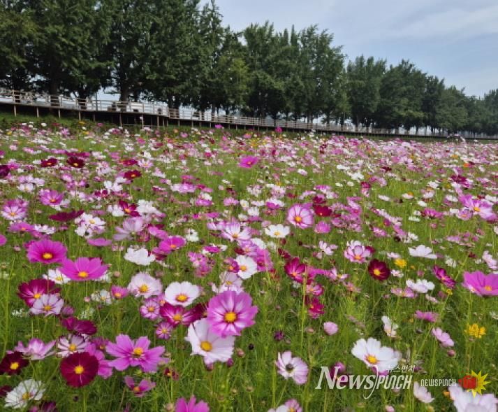 뉴스펀치 김길룡 기자 | 아산시가 곡교천 방문객에게 휴식공간과 볼거리를 제공하기 위해 조성한 ‘곡교천 가을 초화원’이 가을꽃으로 아름답게 물들었다고 밝혔다.