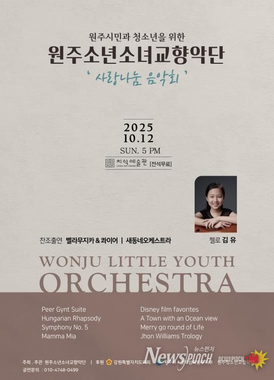 뉴스펀치 김길룡 기자 | 원주소년소녀교향악단은 오는 12일 오후 5시, 치악예술관에서 ‘사랑나눔음악회’를 통해 지역사회와 함께하는 따뜻한 무대를 마련한다.