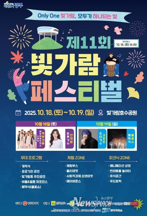 뉴스펀치 김길룡 기자 | 광주광역시는 전라남도, 나주시, 혁신도시 이전 공공기관과 함께 오는 18~19일 이틀간 나주 빛가람동 호수공원 일원에서 ‘2025년 제11회 빛가람페스티벌’을 개최한다.