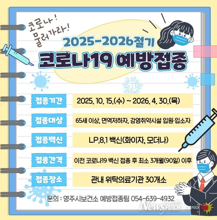 뉴스펀치 김길룡 기자 | 영주시는 오는 10월 15일부터 내년 4월 30일까지 코로나19 무료 예방접종을 실시한다.