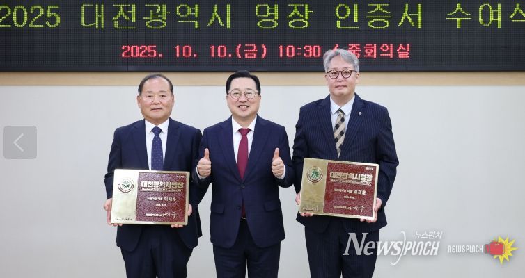 뉴스펀치 김길룡 기자 | 대전시는 10일 시청 중회의실에서 2025년‘대전광역시 명장’으로 선정된 2명에게 인증서와 인증패를 수여했다.