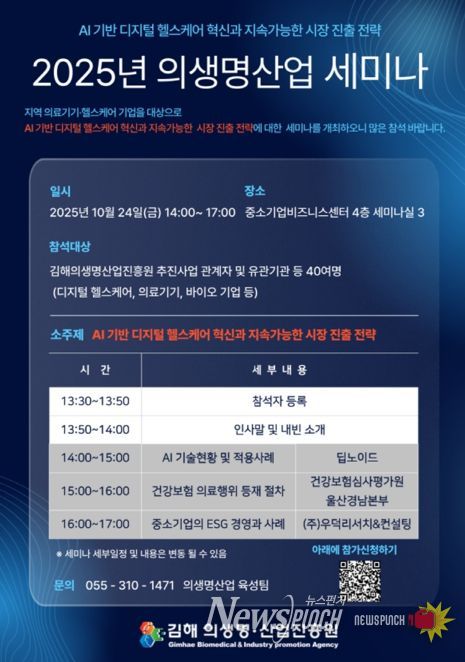 뉴스펀치 김길룡 기자 | 김해의생명·산업진흥원은 오는 24일에 『2025년 의생명산업 세미나』를 개최한다.