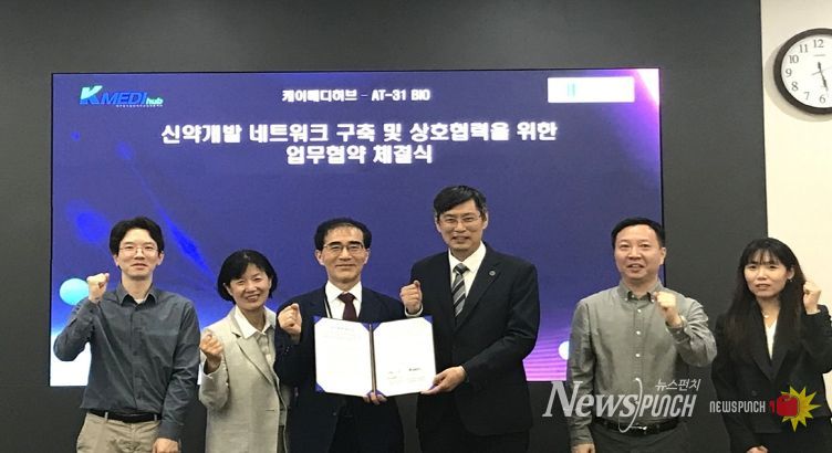 뉴스펀치 조평훈 기자 | 케이메디허브 신약개발지원센터와 ㈜AT-31 BIO가 신약개발 역량 강화 및 산업 생태계 활성화를 위한 전략적 업무협약을 체결했다.