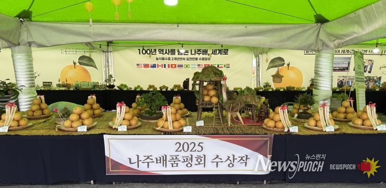 뉴스펀치 김길룡 기자 | 전라남도 나주시가 ‘2025 나주영산강축제’와 연계해 열리고 있는 ‘나주농업페스타’ 현장에서 나주배 품평회 수상작을 비롯한 다양한 전시와 체험 프로그램을 선보이며 시민과 관광객의 발길을 사로잡고 있다.