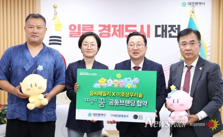 뉴스펀치 이현승 기자 | 대전시는 10일 시청 응접실에서 대전관광공사, 우리술협동조합과 함께 공동브랜딩 업무협약을 맺고, 대전 대표 캐릭터 꿈돌이를 적용한 프리미엄 전통주 ‘100일의 꿈’을 출시한다고 밝혔다.