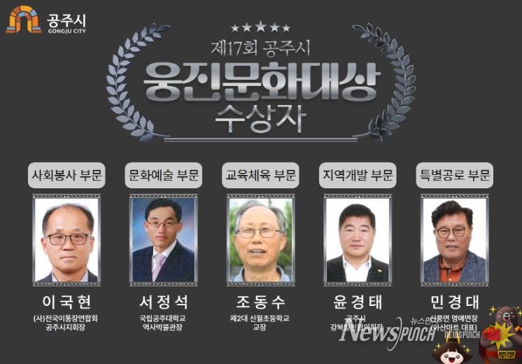 뉴스펀치 김길룡 기자 | 공주시는 제17회 웅진문화대상 수상자를 최종 선정했다고 13일 밝혔다.