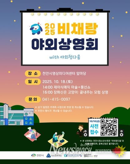 뉴스펀치 김길룡 기자 | 천안문화재단은 오는 18일 천안시영상미디어센터에서 ‘2025 비채랑 야외상영회’를 운영한다고 13일 밝혔다.