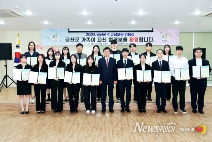 뉴스펀치 김길룡 기자 | 금산군은 지난 10일 금산읍 청산회관에서 2025년도 신규공무원 임용장 수여식을 개최했다.