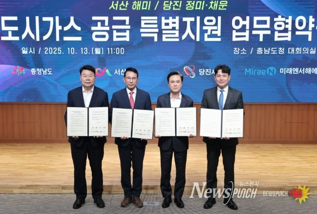 뉴스펀치 김길룡 기자 | 당진시는 13일 충남도청 대회의실에서 충청남도, 미래앤서해에너지와 함께 도시가스 공급 특별지원 업무협약(MOU)을 체결했다고 밝혔다.