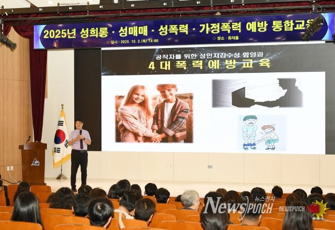 뉴스펀치 김길룡 기자 | 부산 동래구는 지난 2일 구청 동래홀에서 직원들의 성인지 감수성 향상과 4대 폭력(성희롱·성매매·성폭력·가정폭력) 예방을 위한 ‘폭력예방 통합교육’을 실시했다고 밝혔다.