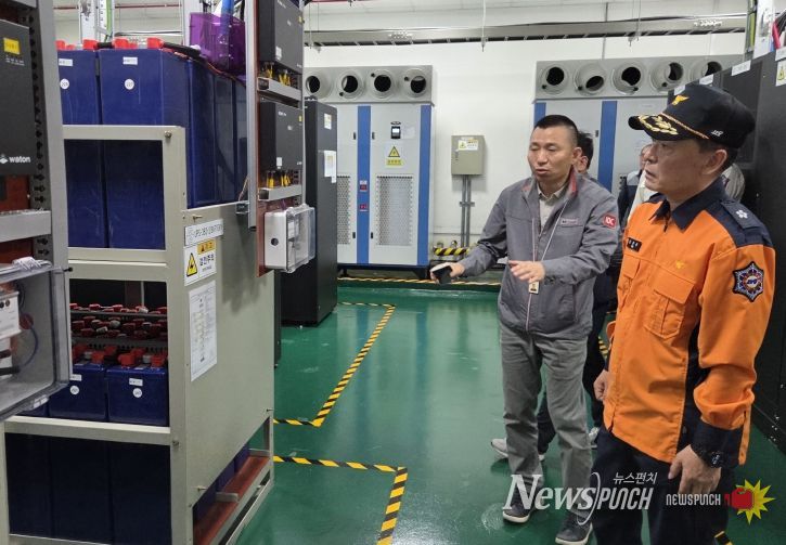 뉴스펀치 김길룡 기자 | 김문용 대전소방본부장은 13일 서구 탄방동에 위치한 KT C 대전DC를 방문해 리튬이온 배터리 등 화재위험 설비를 확인하고, 자동소화설비의 유지관리와 방화구획 상태를 점검하며 관계자에게 초기 대응력 강화를 당부했다.