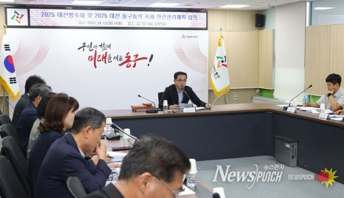 뉴스펀치 김길룡 기자 | 대전 동구는 13일 구청 10층 중회의실에서 ‘2025 대전 동구동락 축제’와 ‘2025 대전 빵축제’의 안전관리계획을 심의하기 위해 ‘동구 안전관리위원회 회의’를 개최했다고 밝혔다.