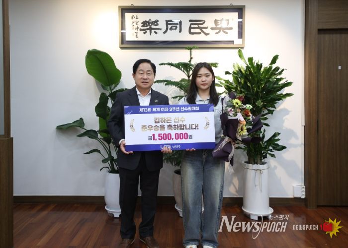 뉴스펀치 탁상훈 기자 | 남양주시는 10월 13일 시장 집무실에서 ‘제13회 세계 여자 3쿠션 선수권대회’ 준우승을 차지한 김하은 선수에게 포상금 150만 원을 전달했다고 밝혔다.