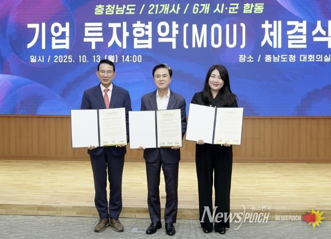 뉴스펀치 김길룡 기자 | 충남 서산시는 지난 13일 충남도청 대회의실에서 열린 합동 투자협약에서 농업회사법인 지에이치내츄럴㈜과 105억 원 규모의 투자협약을 체결했다고 밝혔다.