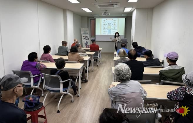 강의는 당뇨 개선을 위한 올바른 생활 습관 안내를 중심으로 진행됐으며, 강의 후에는 혈압과 당뇨 등 건강 상태 확인도 이루어졌다.