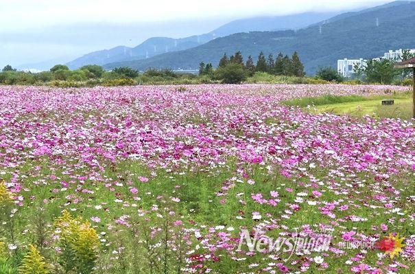 뉴스펀치 김길룡 기자 | 김해 대동생태체육공원이 가을 정취 가득한 코스모스로 장관을 이루며 시민들과 관광객들에게 큰 인기를 끌고 있다.