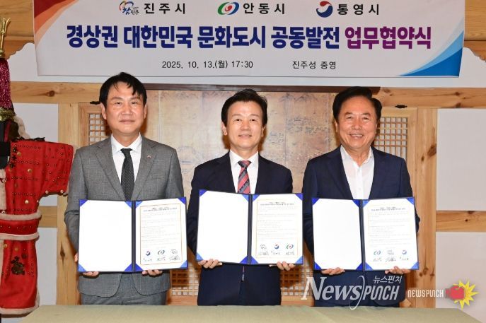 뉴스펀치 김길룡 기자 | 대한민국 문화도시로 지정된 진주와 안동, 통영 등 경상권 3개 도시들이 대한민국 문화도시의 성공적인 조성을 위한 협력의 첫걸음을 내딛었다.