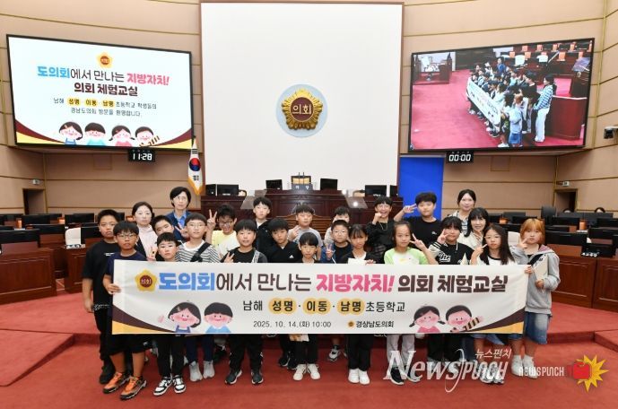 뉴스펀치 김길룡 기자 | 경상남도의회는 14일 남해 소규모 공동학교(성명초, 이동초, 남명초) 5학년 학생 20명을 대상으로 도의회에서 만나는 지방자치! 의회체험교실을 개최했다.