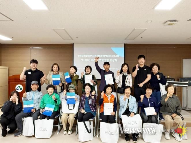 뉴스펀치 김길룡 기자 | 함양군종합사회복지관은 마산대학교 스포츠산업육성사업단과 협력해 추진한 ‘어르신 면역증진 프로그램’이 12주간의 일정을 마치고 10월 13일 종강식을 열며 성황리에 마무리됐다고 밝혔다.