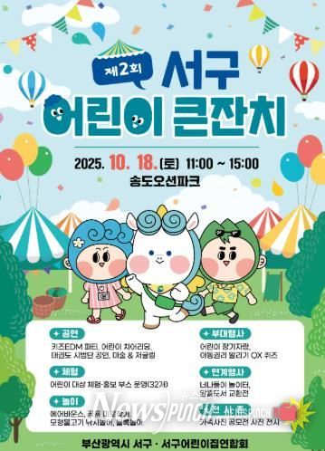 뉴스펀치 김길룡 기자 | 제2회 서구 어린이 큰잔치가 오는 10월 18일 오전 11시부터 오후 3시까지 송도오션파크 힐링의 광장에서 열린다.