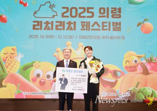 손 씨는 지난 12일 열린 리치리치페스티벌 ‘토요애 화합콘서트’ 무대에서 오태완 의령군수로부터 홍보대사 위촉패를 전달받고, 축하 공연을 펼쳤다. 특히 이날 의령 발전을 위한 고향사랑기부금 500만 원을 기부해 큰 박수를 받았다.
