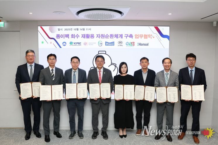 참여 기업은 (사)한국포장재재활용사업공제조합(이사장 김동진), 대상웰라이프(주)(대표이사 서훈교), ㈜대흥리사이클링(대표이사 박혜란), ㈜매일유업(대표이사 이인기), 에스아이지콤비블록코리아(주)(사장 조명현), ㈜정식품(대표이사 정연호), 한솔제지(주)(대표이사 한경록)로 종이팩 수거·분리배출 홍보·사용 확대·보상 프로그램 운영·친환경 제품 생산 등 각자의 역할에서 협력을 다짐했다.
