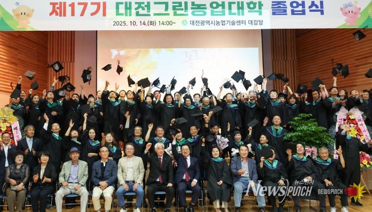 뉴스펀치 김길룡 기자 | 대전광역시농업기술센터는 14일 농업기술센터 대강당에서 제17기 대전그린농업대학 졸업식을 진행했다.