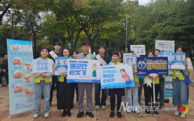 뉴스펀치 김길룡 기자 | 청주시 보건소는 14일 오후 상당구 성안길과 중앙공원 일원에서 ‘세계 손씻기의 날’을 맞아 감염병 예방 합동 캠페인을 실시했다.