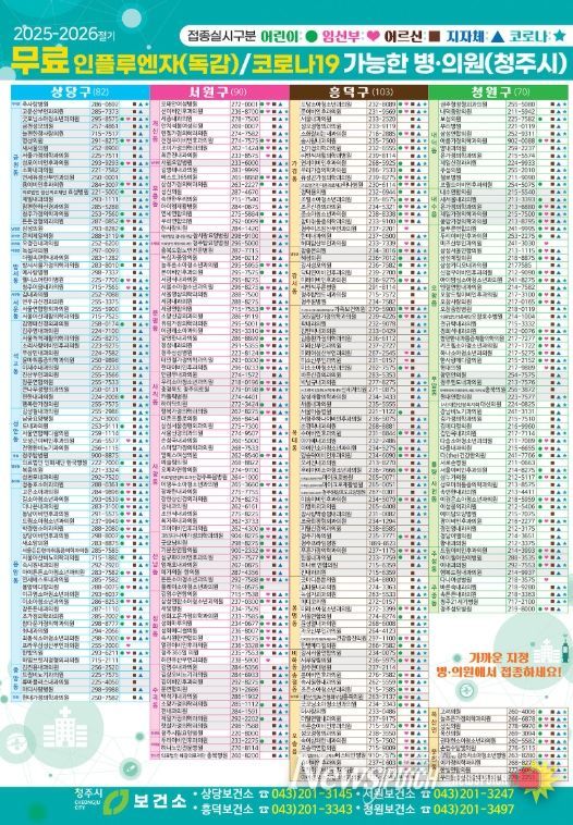 상당보건소 관계자는 “시민들의 인플루엔자 면역력 강화를 위해 무료 접종 대상자는 기간 내 반드시 예방접종 받으시길 권장한다”고 말했다.