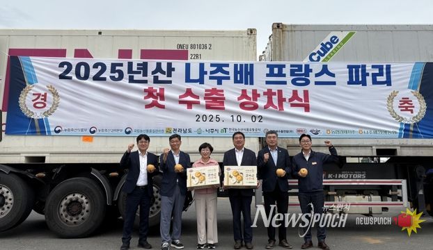 나주시(시장 윤병태)는 최근 장현순 네시피F&B 대표, 이동희 나주배원예농협 조합장, 최명수 전남도의원 등 관계자가 참석한 가운데 나주배 프랑스 첫 수출 상차식을 진행했다고 14일 밝혔다.