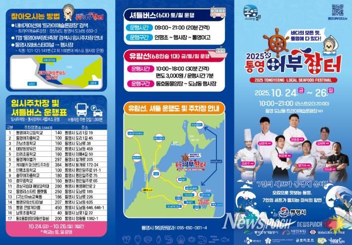 뉴스펀치 김길룡 기자 | 통영 도남동 트라이애슬론광장 일대에서 오는 24일부터 26일까지 3일간'2025 통영어부장터축제'가 열린다.