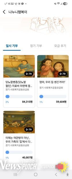 ‘나누니 행복이’는 경기지역화폐 앱 내 ‘기부하기’ 메뉴에서 소개된 이웃들의 사연 중 기부를 원하는 대상을 선택해 ‘기부하기’를 클릭하면 모금 기간 종료 후 대상자에게 기부금이 전달되는 방식으로 운영된다.