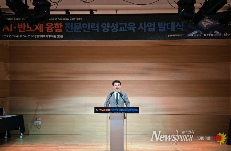 뉴스펀치 김길룡 기자 | 강원특별자치도는 10월 15일 강원대학교 미래도서관에서 'AI․반도체 융합 전문인력 양성교육' 발대식을 개최하고 2029년까지 전문인력 450명을 양성한다고 밝혔다.