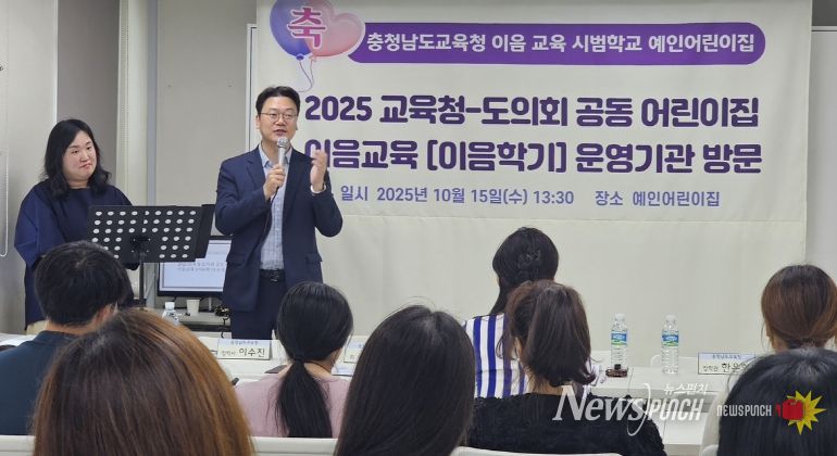 뉴스펀치 김길룡 기자 | 충남교육청은 15일, 충청남도의회 신한철 의원과 함께 천안시 예인어린이집을 대상으로 어린이집 이음교육(이음학기) 운영 현장을 방문했다.
