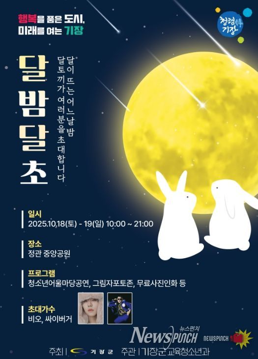 뉴스펀치 김길룡 기자 | 기장군은 오는 18일부터 19일까지 정관읍 중앙공원 일원에서 2025 기장군청소년어울마당 ‘달밤달초’를 개최한다고 15일 밝혔다.