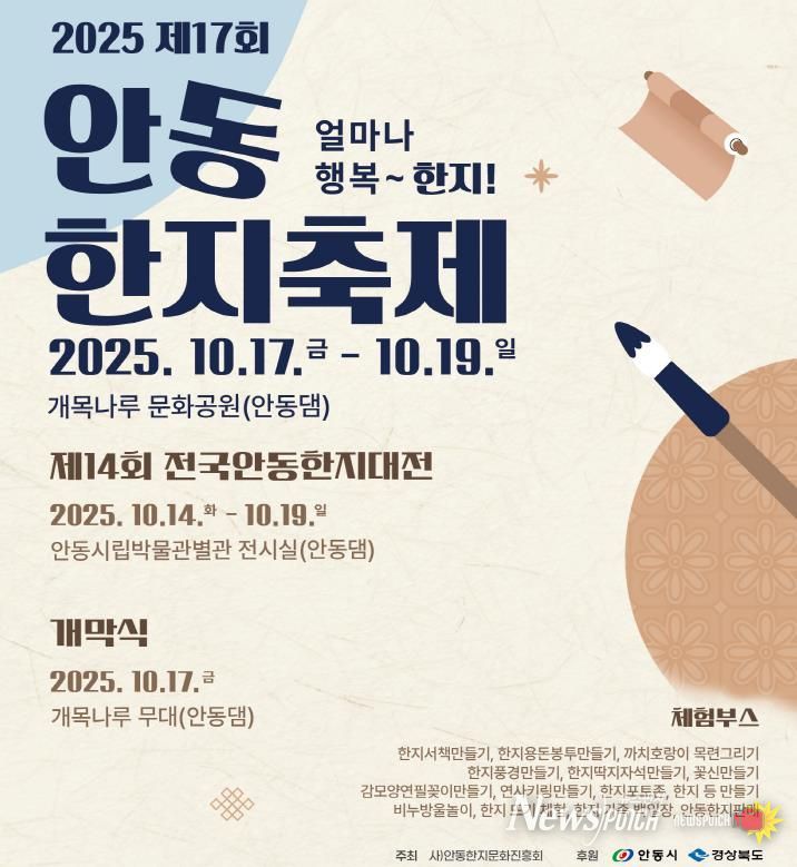 뉴스펀치 김길룡 기자 | 경상북도와 안동시가 후원하고 (사)안동한지문화진흥회가 주관하는 제17회 안동 한지축제가, 오는 10월 17일부터 19일까지 3일간 안동시 월영교 개목나루 문화공원 일원에서 개최된다.