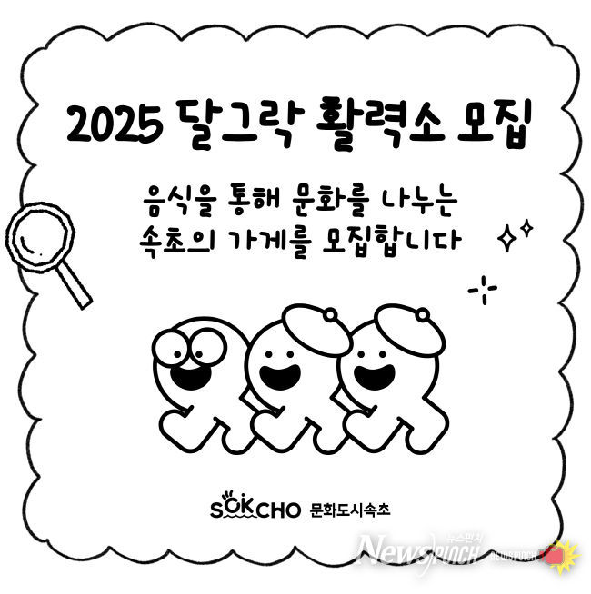 뉴스펀치 김길룡 기자 | (재)속초문화관광재단은 대한민국 문화도시 조성 사업의 일환으로, 음식문화 향유공간 조성 사업인 ‘2025 달그락 활력소’ 참여 가게를 10월 26일까지 모집한다.