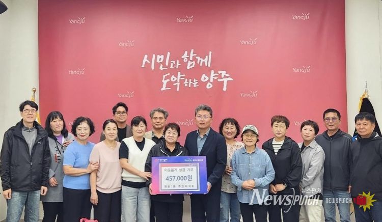 뉴스펀치 김길룡 기자 | 양주시 회천1동 주민자치회(회장 최태옥)가 최근 어려운 이웃을 돕기 위해 벼룩시장 운영 수익금 전액인 45만7천 원을 회천1동 행정복지센터에 기부했다.
