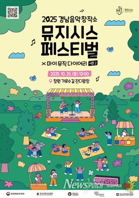 뉴스펀치 김길룡 기자 | 경상남도와 경상남도문화예술진흥원은 10월 25일 오후 1시 창원 가로수길 잔디광장(경남 창원시 성산구 용호로 65)에서 ‘2025 경남음악창작소 뮤지시스 페스티벌’이 열린다고 밝혔다.