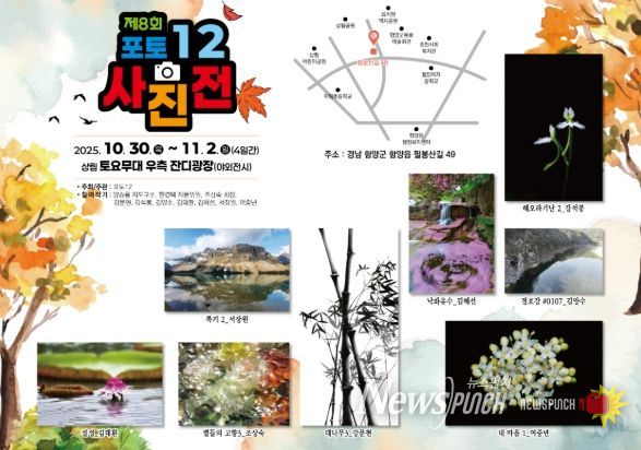 뉴스펀치 김길룡 기자 | 함양지역 사진동호회 ‘포토12’가 오는 10월 30일부터 11월 2일까지 상림공원 토요무대 잔디광장 특설전시장에서 ‘제8회 포토12 회원전’을 연다.