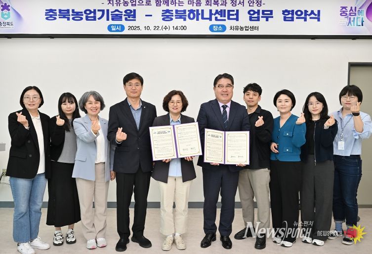 뉴스펀치 김길룡 기자 | 충북농업기술원은 10월 22일 치유농업센터에서 충북하나센터와 북한이탈주민의 심리·정서적 안정을 지원하기 위한 업무협약을 체결했다고 밝혔다.