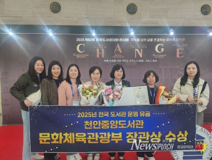 뉴스펀치 김길룡 기자 | 천안시 중앙도서관은 제62회 전국도서관대회에서 ‘도서관 운영 유공’ 우수도서관에 선정돼 문화체육관광부 장관상을 수상했다고 23일 밝혔다.