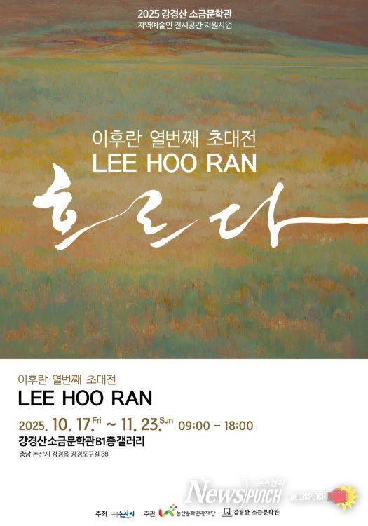 뉴스펀치 김길룡 기자 | (재)논산문화관광재단이 강경산 소금문학관 지역예술인 전시공간 지원사업으로“흐르다”- 이후란 10번째 초대전을 11월 23일까지 강경산 소금문학관 지하 1층 갤러리에서 개최한다.