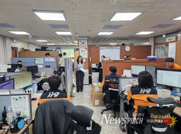 뉴스펀치 김길룡 기자 | 거제시는 지난 22일 거제소방서(서장 전수진)를 방문해 소방공무원을 대상으로 ‘탄소중립포인트제’ 가입 홍보 활동을 펼쳤다.