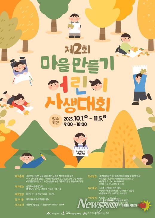 아산시먹거리재단 관계자는 “아이들의 눈으로 본 농촌과 마을의 모습은 어른들에게도 큰 울림을 준다”며, “이번 대회를 통해 어린이들이 자연과 농촌마을을 이해하고 사랑하는 마음을 키우는 계기가 되길 바란다”고 전했다.
